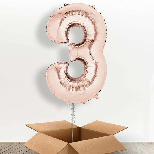 Big Rose Gold Number 3 Balloon Number in a Box
