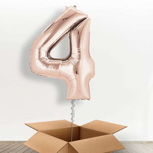 Big Rose Gold Number 4 Balloon Number in a Box