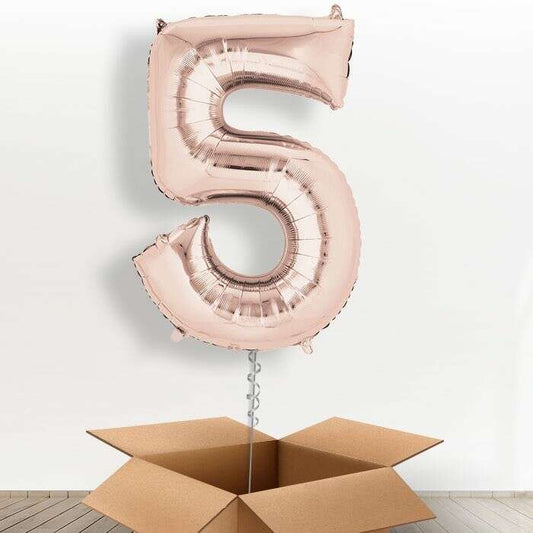Big Rose Gold Number 5 Balloon Number in a Box