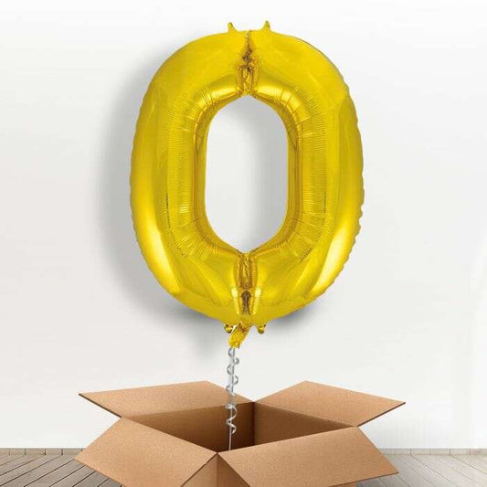 Big Gold Number 0 Balloon Number in a Box
