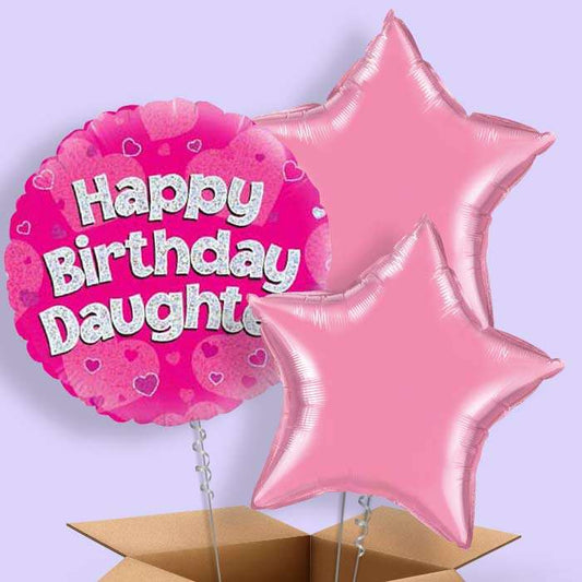 Happy Birthday Daughter Pink Hearts Balloon in a Box