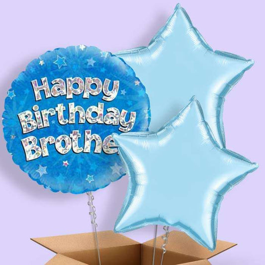 Happy Birthday Brother Blue Stars Balloon in a Box