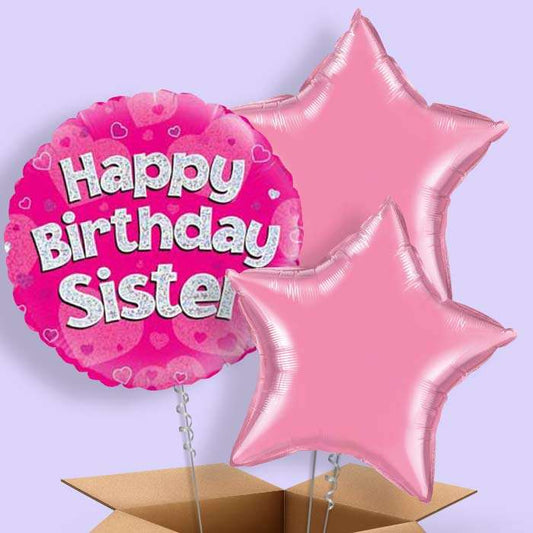 Happy Birthday Sister Pink Hearts Balloon in a Box