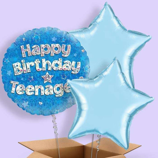 Happy Birthday Teenager Blue Stars Balloon in a Box