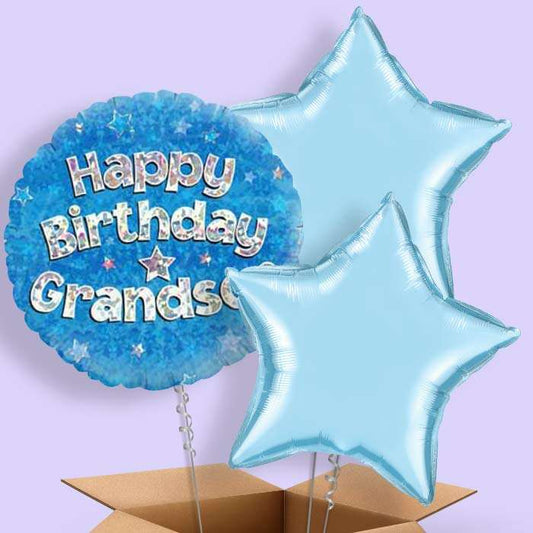 Happy Birthday Grandson Blue Stars Balloon in a Box