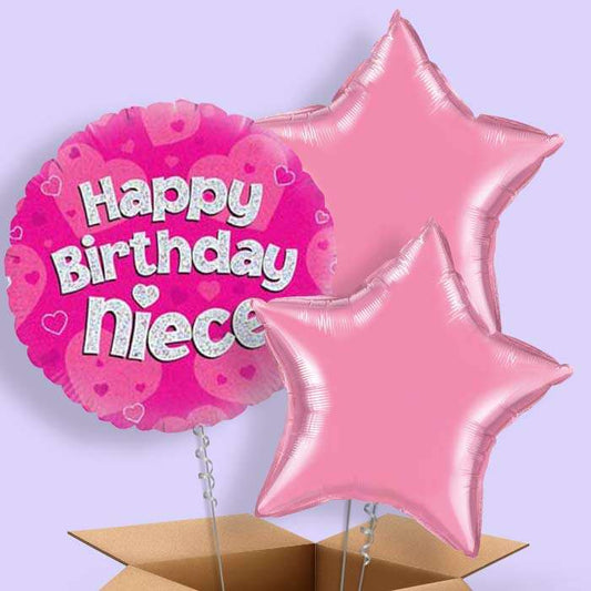 Happy Birthday Niece Pink Hearts Balloon in a Box