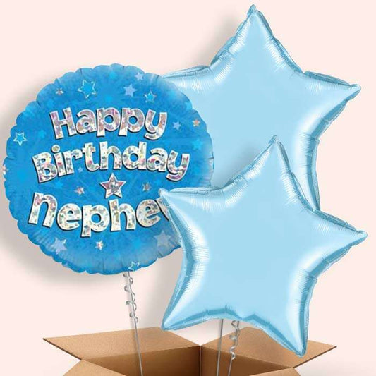 Happy Birthday Nephew Blue Stars Balloon in a Box