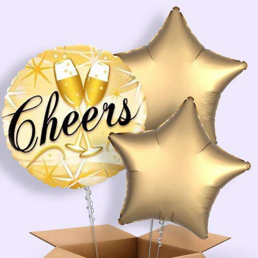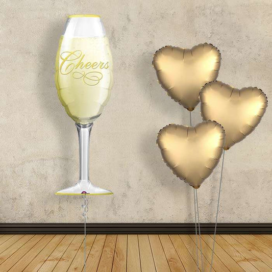 Cheers Glasses Gold Bunch of Balloons inflated with Helium (Trio)