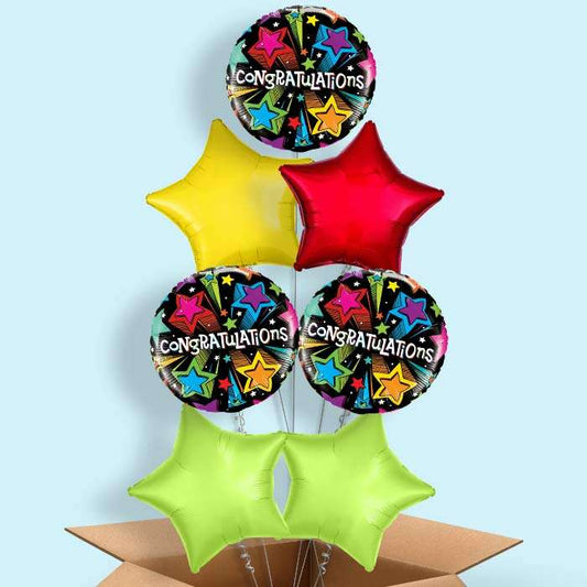 Congratulations Colourful Stars Balloon Delivery in a Box