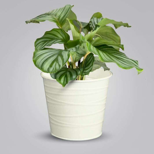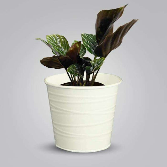 Chlorophytum Comosum Variegatum with White Metal Pot