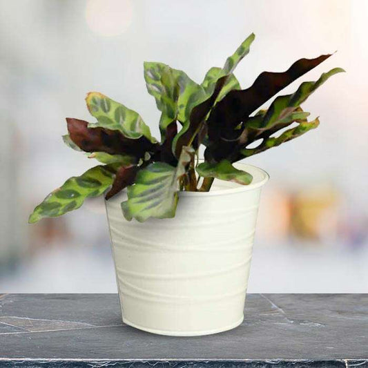 Begonia Maculata Indoor Plant with a White Metal Pot (13cm)