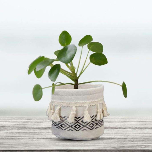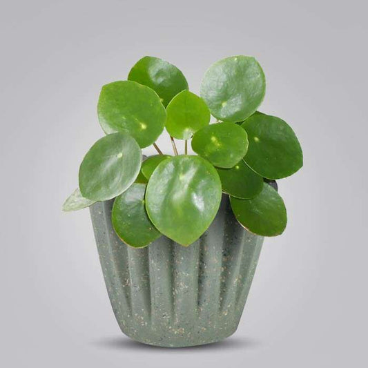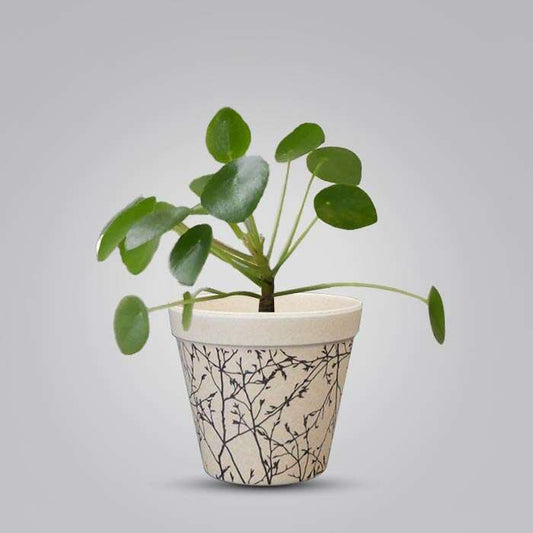 Pilea Peperomioides Houseplant with Bamboo Plant Pot
