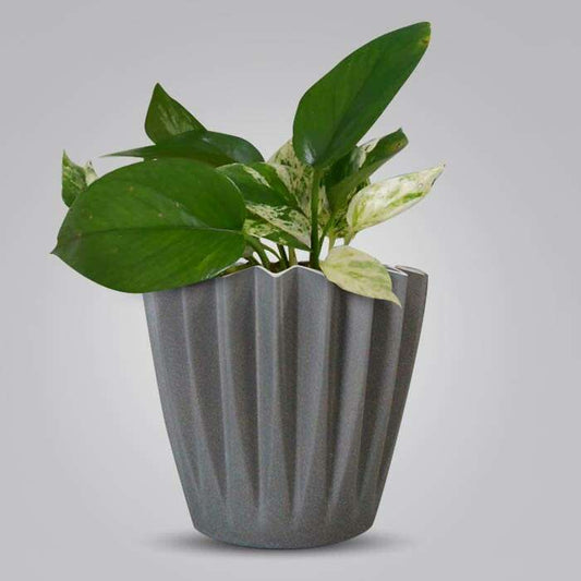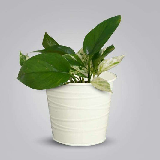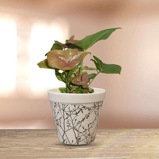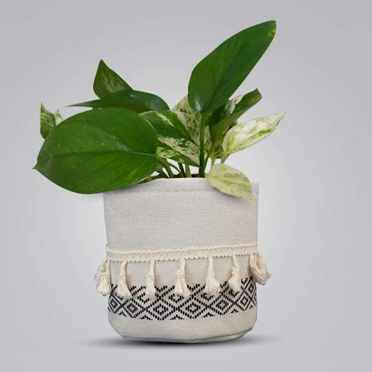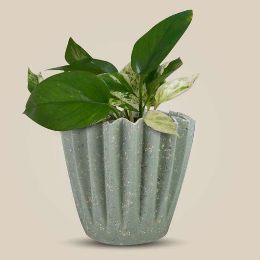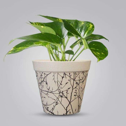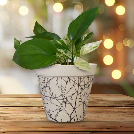 Scindapsus Marble Queen with Bamboo Plant Pot