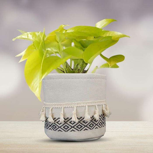 Scindapsus Golden Queen with Bamboo Plant Pot
