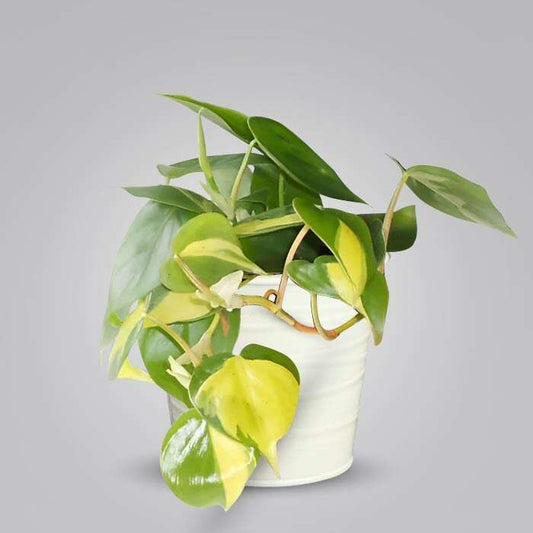 Philodendron Scandens Brazil with White Metal Pot