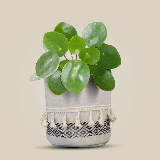 Pilea Peperomioides Houseplant with Cotton Pot