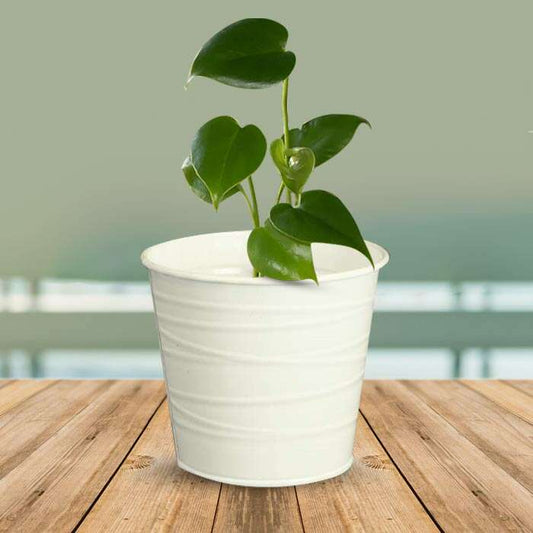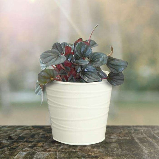 Peperomia Caperata with White Metal Pot