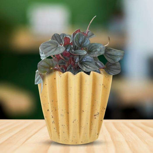 Peperomia Caperata with Yellow Plant Pot