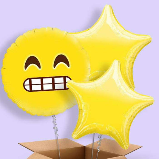 Grin Emoji Balloon Bunch inflated with Helium (Trio)