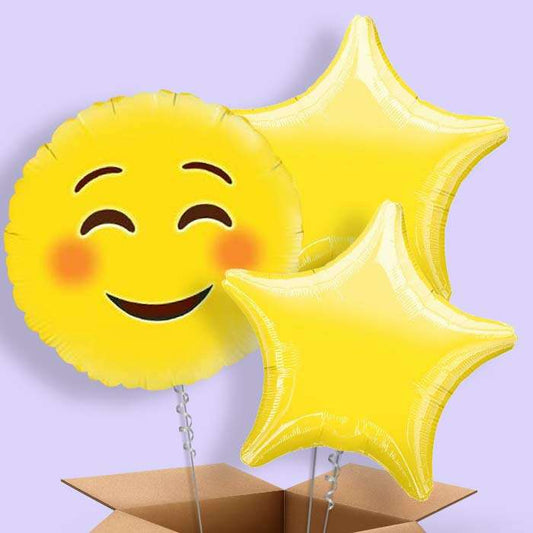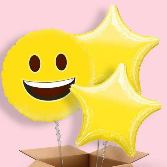 Emoji Happy Balloon Bunch inflated with Helium (Trio)