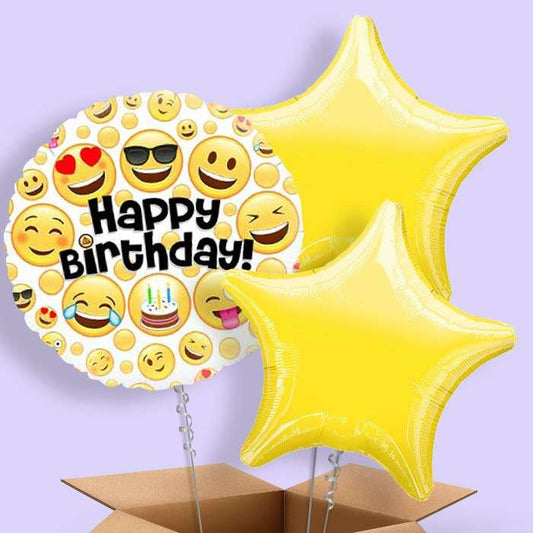 Emoji Happy Birthday Balloon Bunch inflated with Helium (Trio)