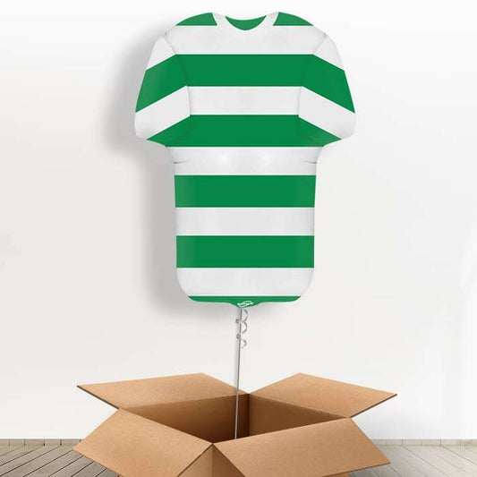 Green and White Hoop Football Shirt Helium Balloon in a Box