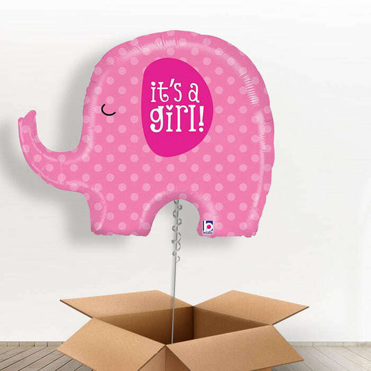 Pink Elephant Its a Girl Balloon in a Box Gift