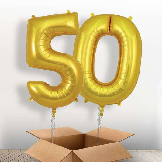 Gold Giant Numbers 50th Birthday Balloon in a Box Gift