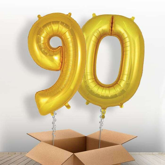 90 Birthday Balloons in a Box - Gold