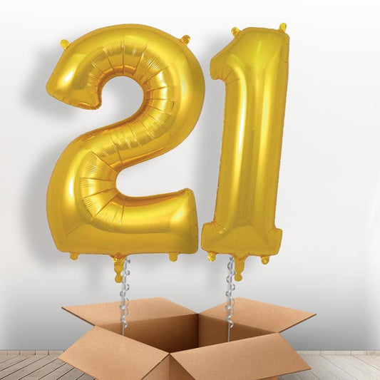 Gold Giant Numbers 21st Birthday Balloon in a Box Gift