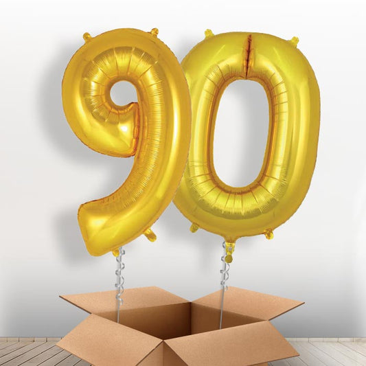 90 Birthday Balloons in a Box - Gold