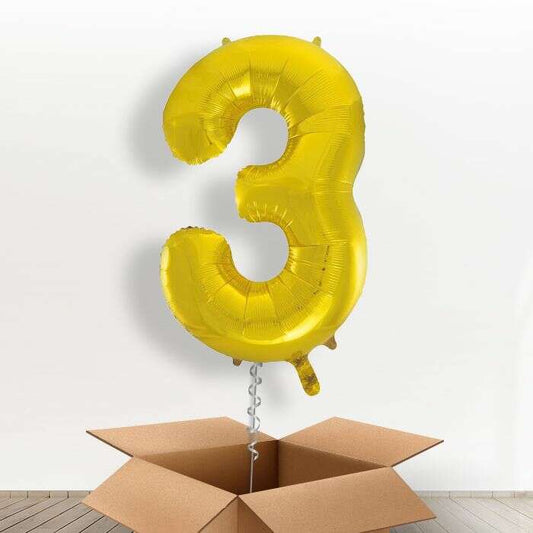 Big Gold Number 3 Balloon Inflated Number in a Box