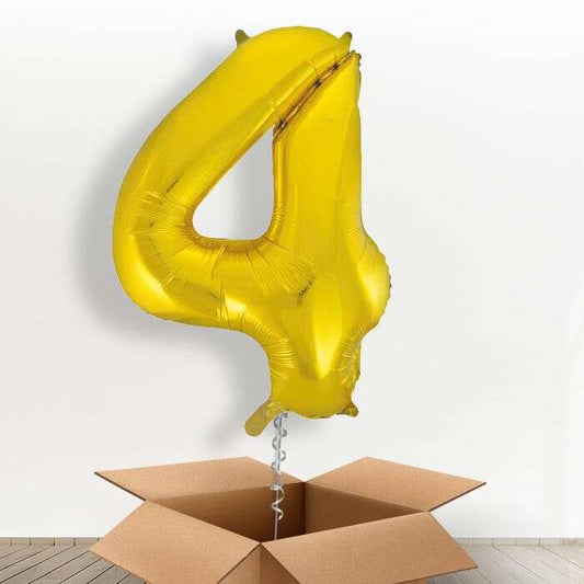 Big Gold Number 4 Balloon Inflated Number in a Box