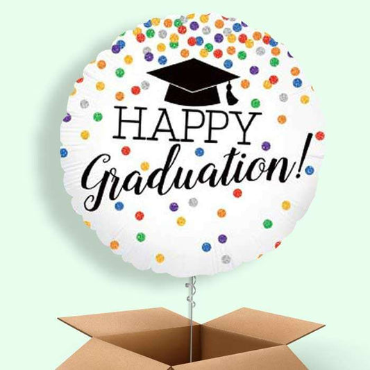 Find the perfect Graduation helium balloons. Celebrate this incredible moment with a Graduation Balloon in a Box. You can add a gift message and personalise your balloons too!