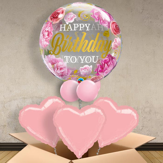 Pink Peonies Birthday Bubble Helium Balloon in a Box