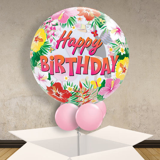 Tropical Flowers Happy Birthday Helium Balloon in a Box