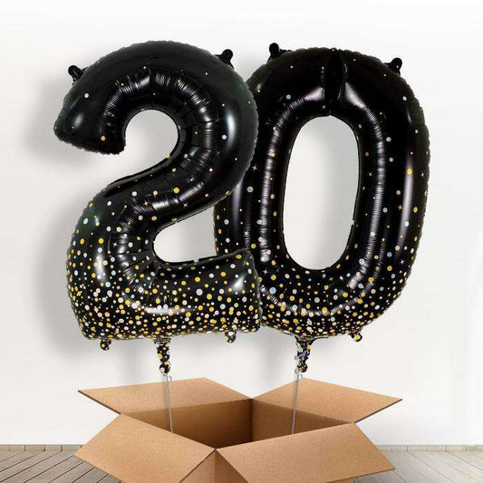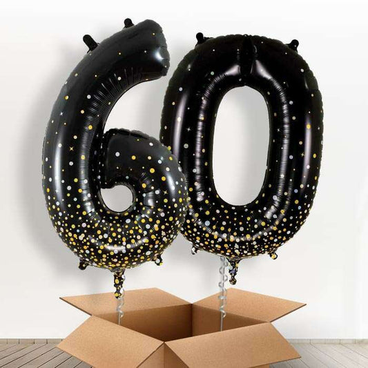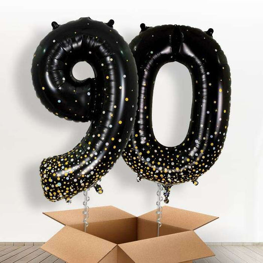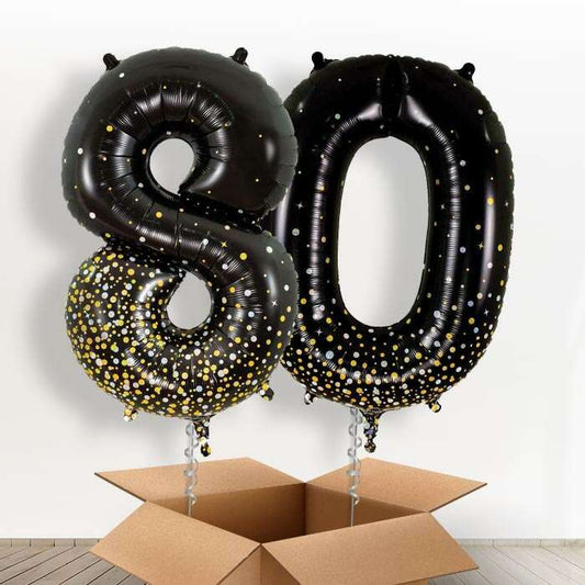 80th Black & Gold Bunch of Balloons Inflated with Helium (Trio)