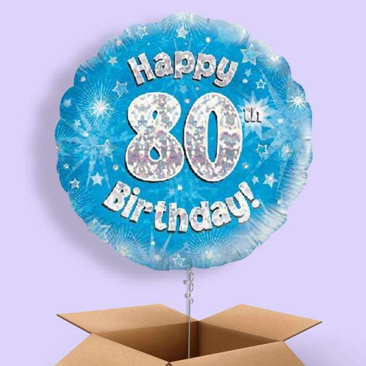 Happy 80th Birthday Blue Stars Balloon in a Box