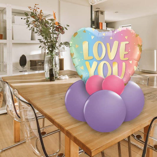 Love You Ombre and Gold Heart Balloon Gift Message | Table Decoration
