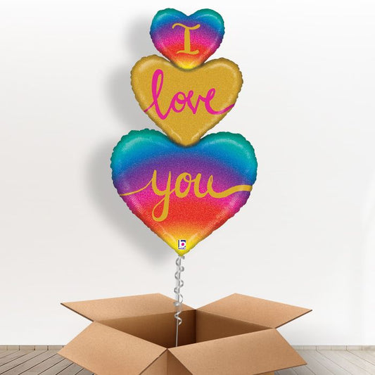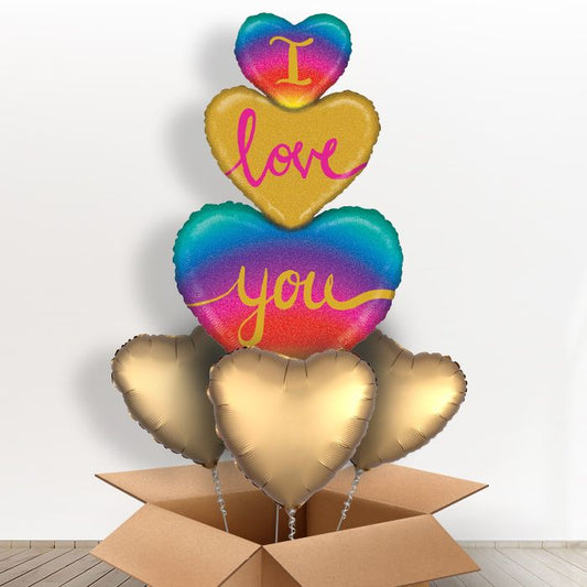 I Love You Balloons in a Box (Rose Gold Hearts)