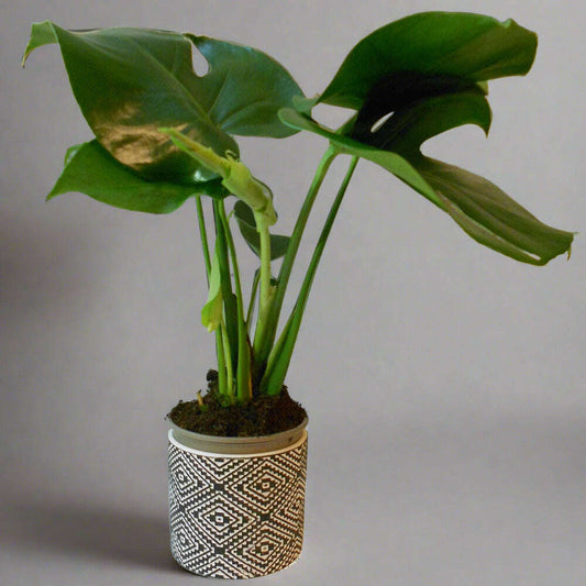 Monstera Deliciosa Houseplant with Bamboo Plant Pot