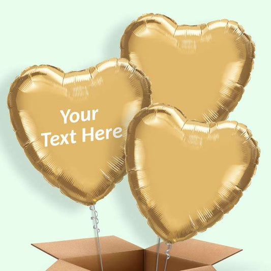 Chrome Gold Heart Bunch of Balloons inflated with Helium (Trio)