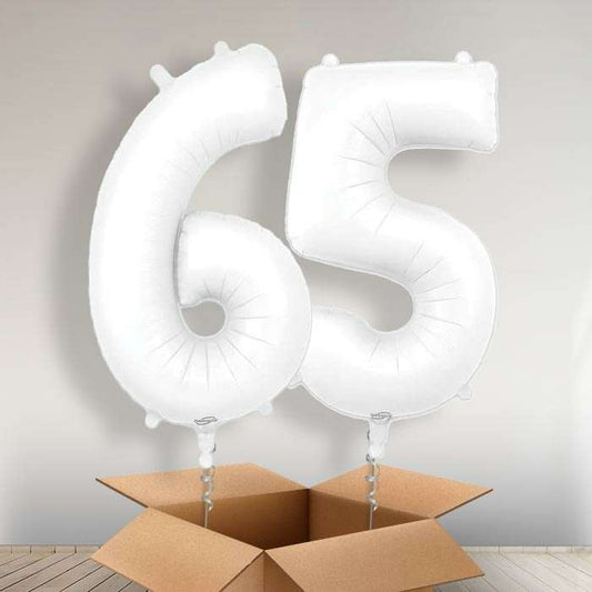 65th Birthday Balloons in a Box - Silver Numbers