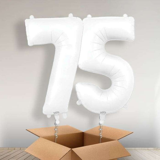 Age 75 Balloons in a Box - Silver Number