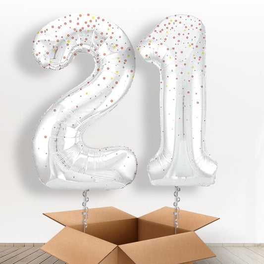 Silver Giant Numbers 21st Birthday Balloon in a Box Gift