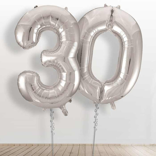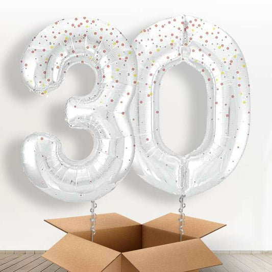Silver Giant Numbers 30th Birthday Balloon in a Box Gift