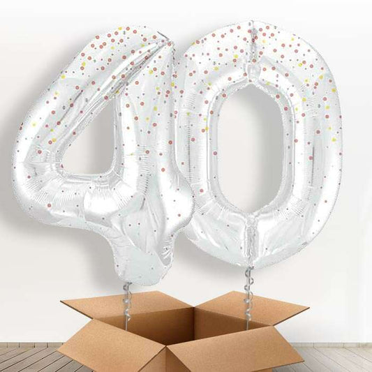 Silver Giant Numbers 40th Birthday Balloon in a Box Gift