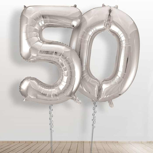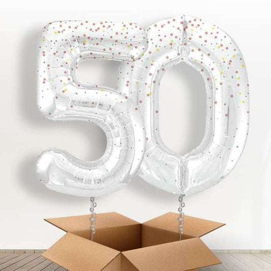 Silver Giant Numbers 50th Birthday Balloon in a Box Gift