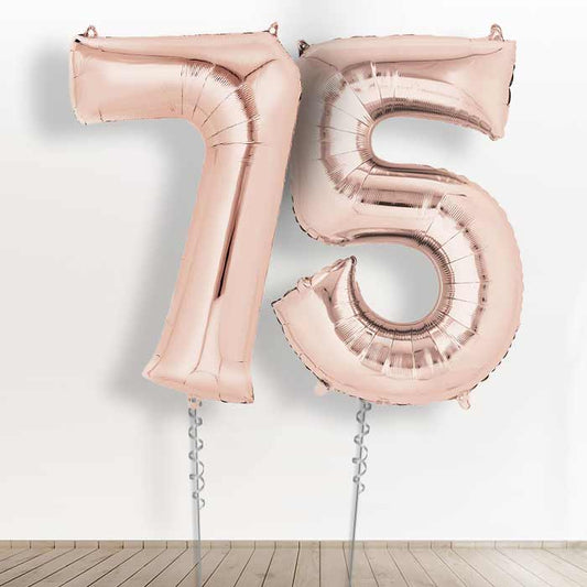 75th Birthday Balloons in a Box - Rose Gold Numbers