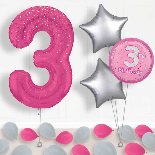 Hot Pink Dots Number 3 Balloon in a Box